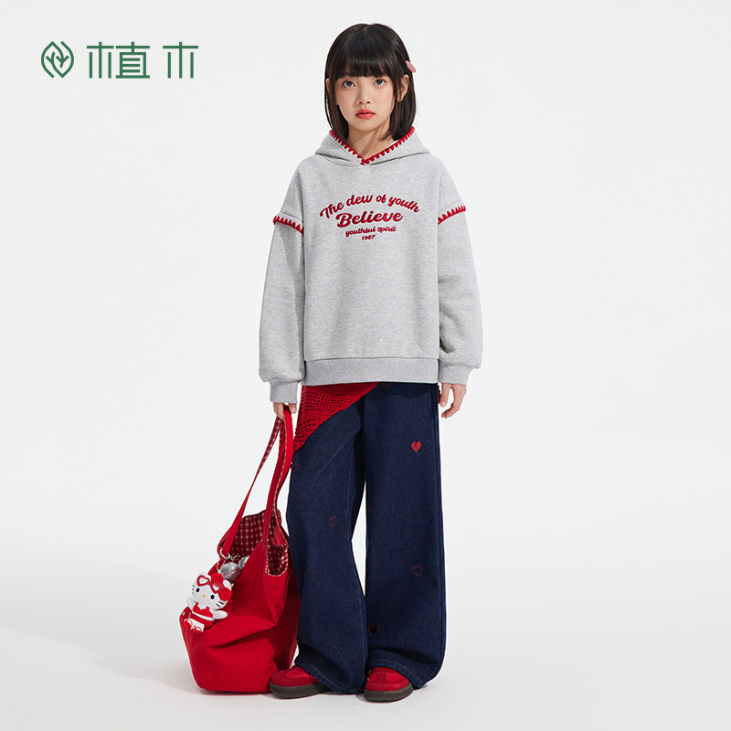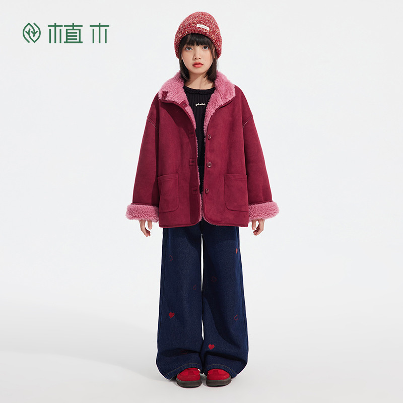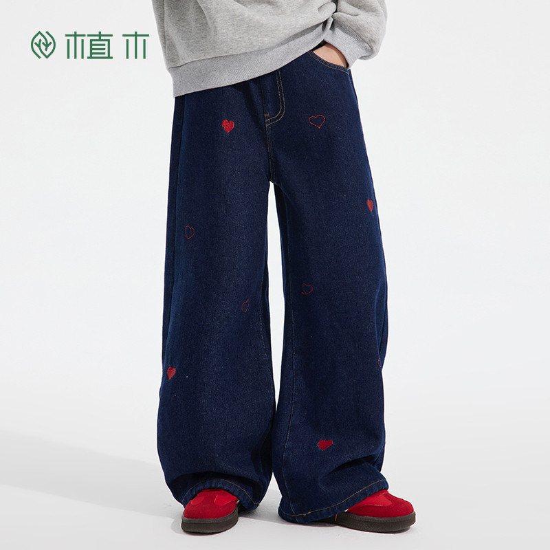 植木童装 儿童裤子2025秋冬新款中大童阔腿裤牛仔裤女童加绒裤子