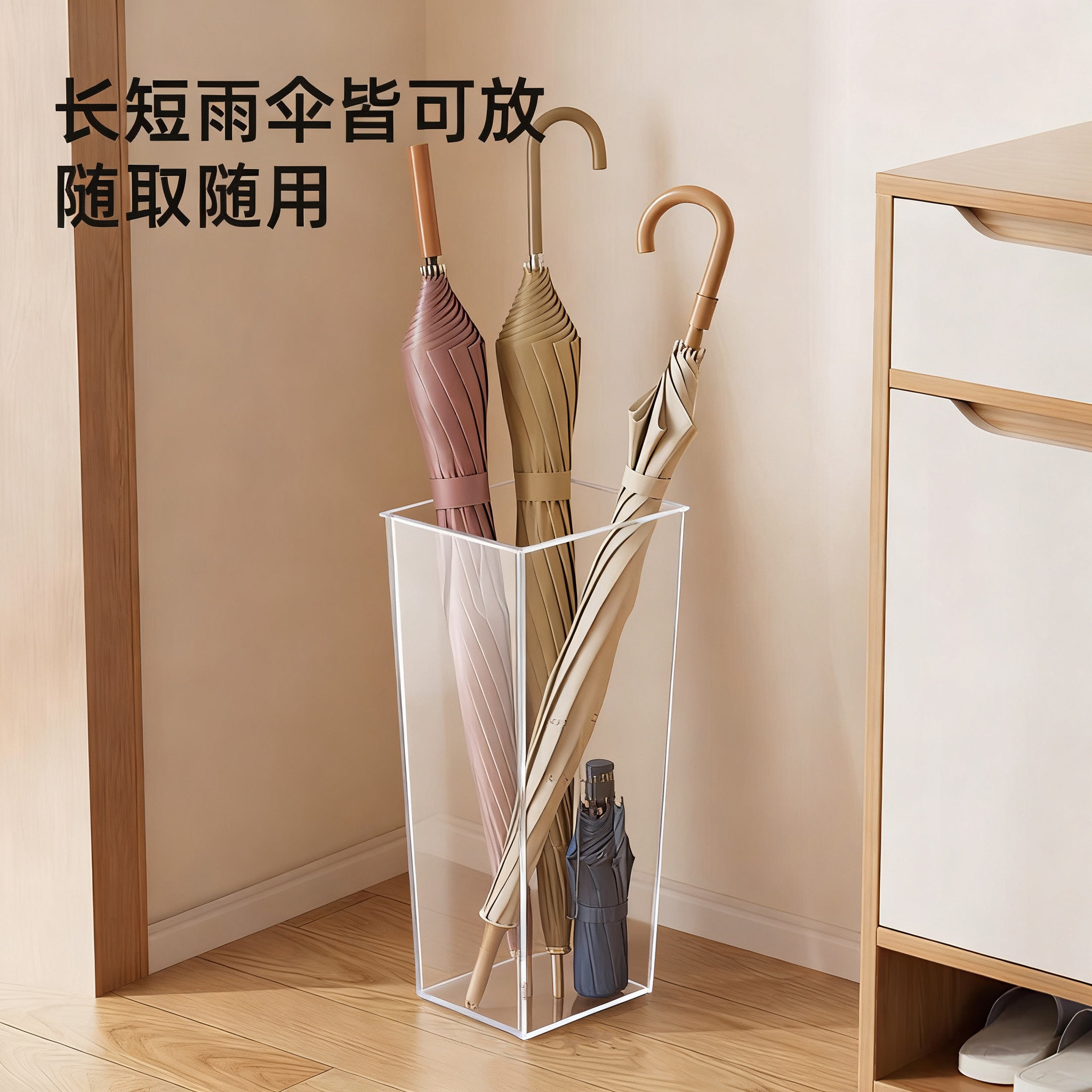 入户门口长柄雨伞架收纳架家用大容量透明沥水放伞收纳桶伞放置桶