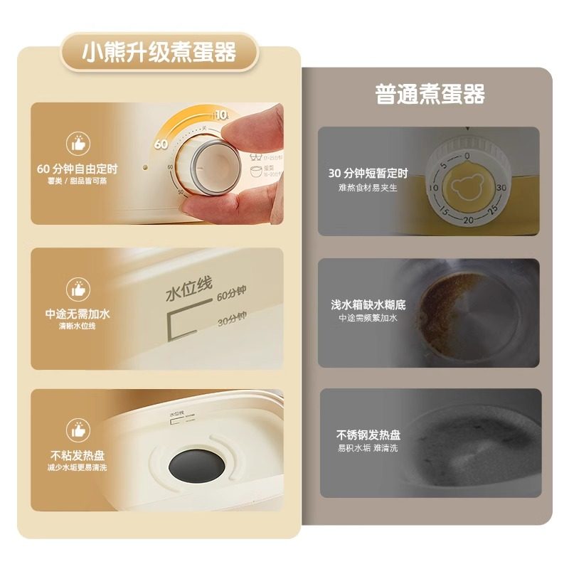 小熊煮蛋器2025新款自动断电蒸蛋器家用小型多功能早餐机定时神器