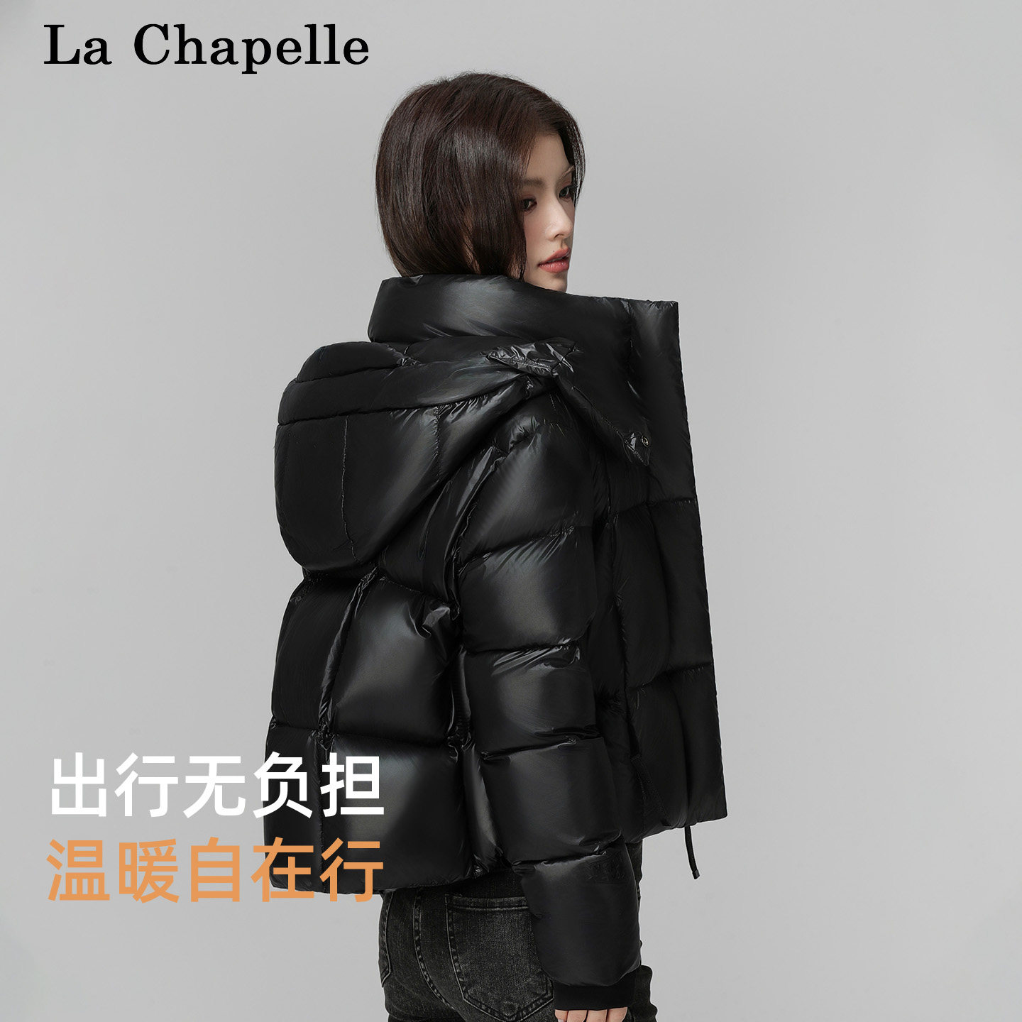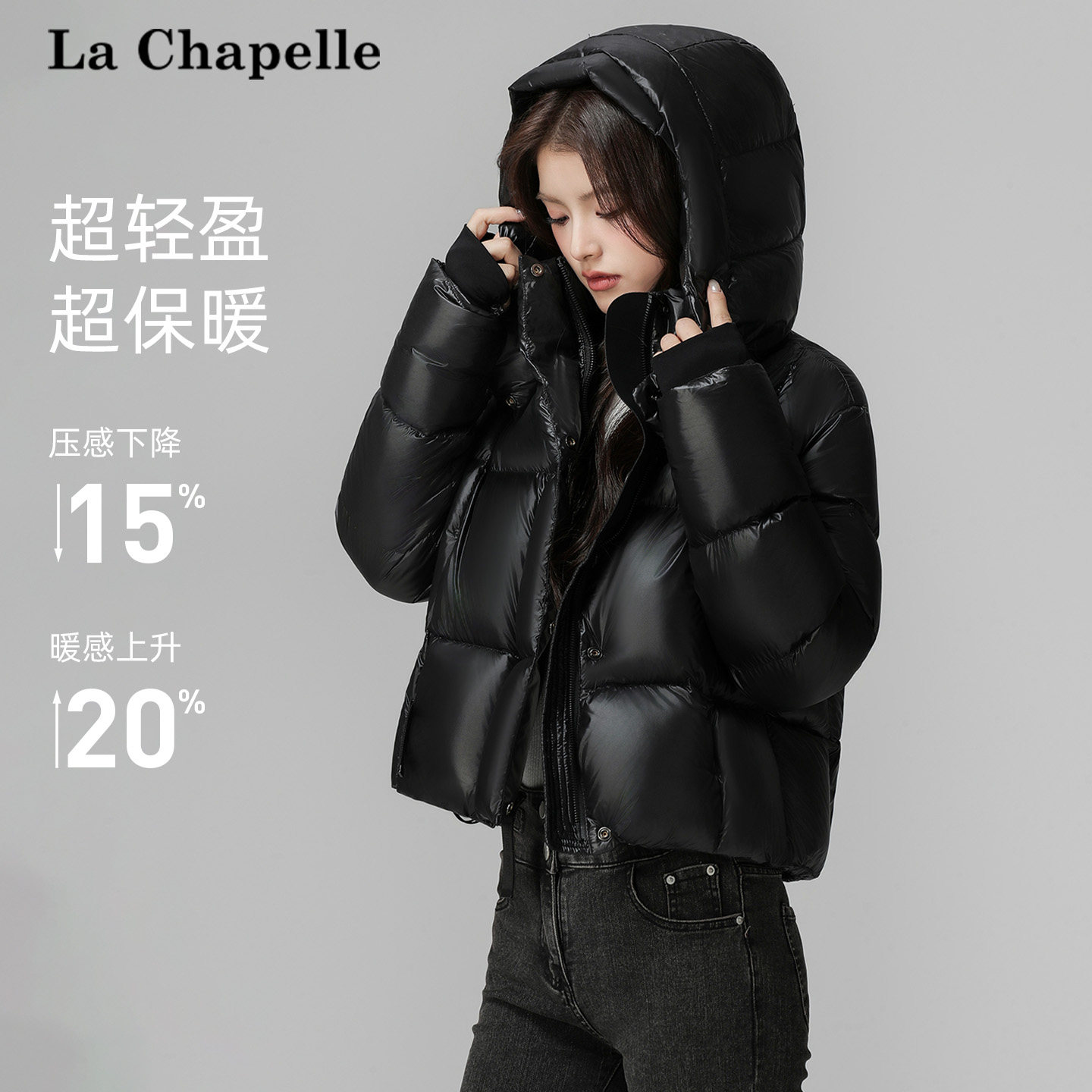 拉夏贝尔羽绒服女2025高克重短款连帽时尚百搭休闲95绒加厚外套