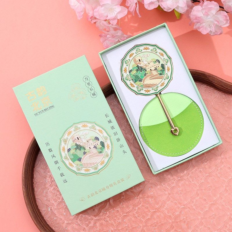 古风北京手提式镜子文化创意金属柄手提式化妆镜手提式镜S子旅行
