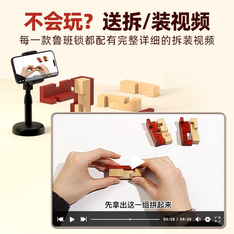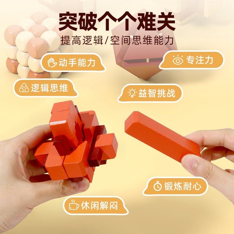 孔明锁鲁班锁全套智力解环木制榫卯积木九连环小学生儿童益智玩具
