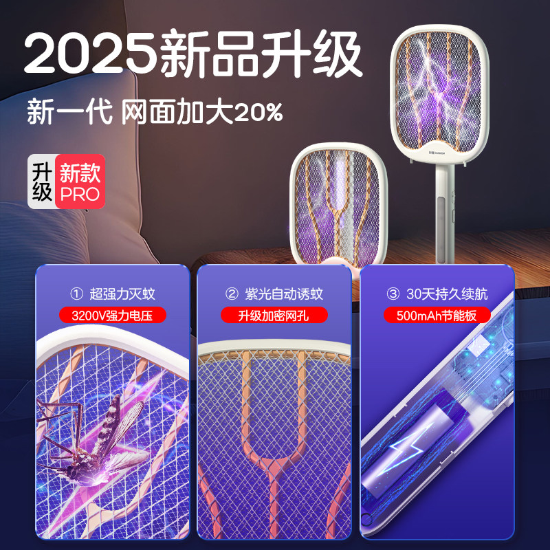 推荐理由:彩虹电蚊拍充电式家用强力灭蚊灯自动诱蚊子超强驱蚊神器打苍蝇拍