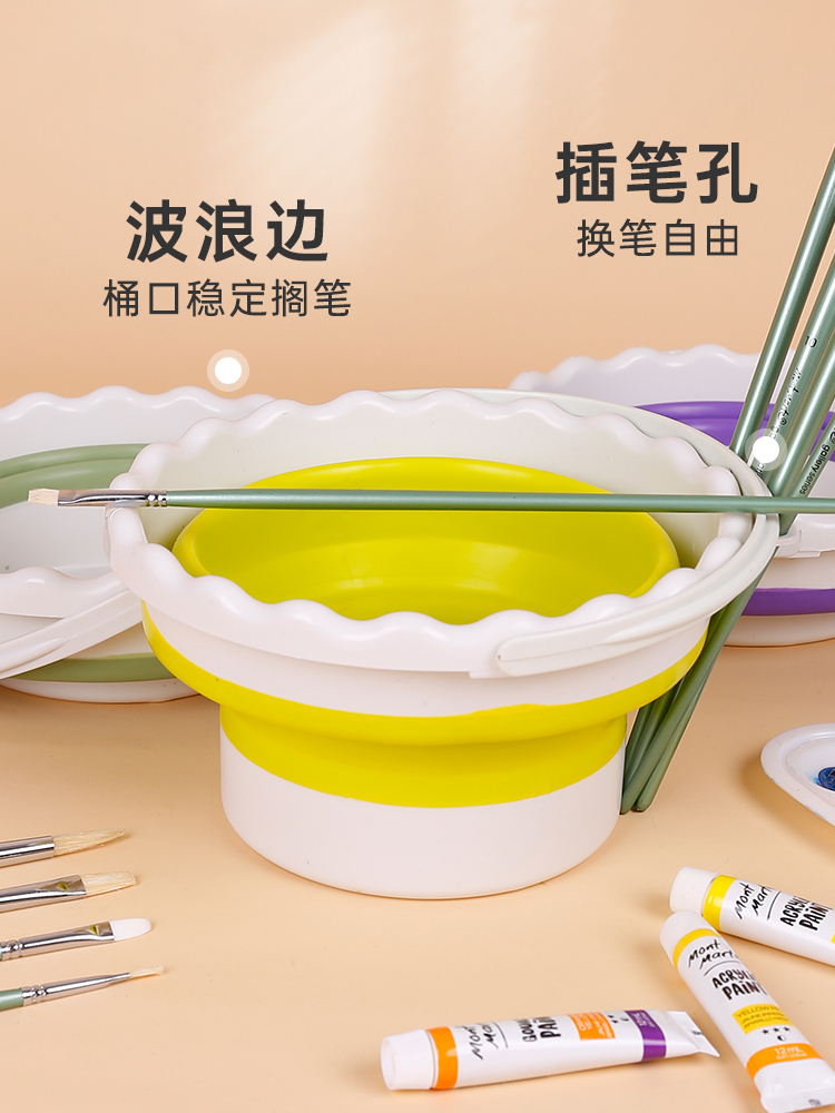 便携式折叠水桶硅胶洗笔桶多功能大号水桶美术生水粉水彩丙烯油画洗笔盒可插笔可伸缩塑料小水桶车载洗车水桶
