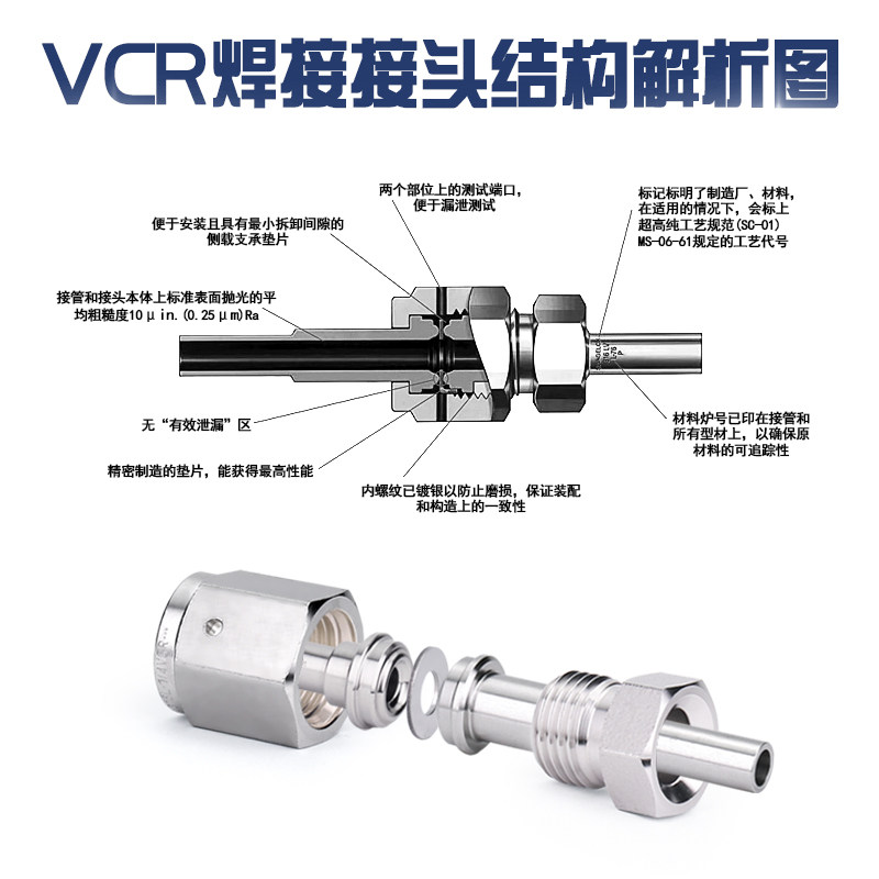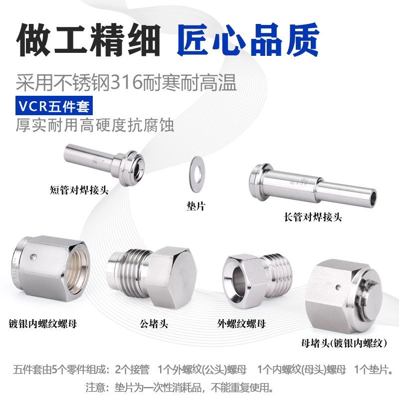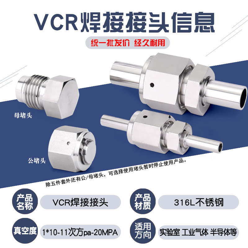 VCR长杆EP接头gland焊管螺母堵头垫片316L高温超高微焊纯净气体