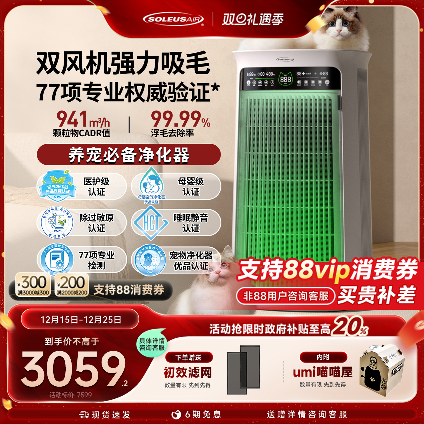 舒乐氏猫用宠物空气净化器吸猫毛浮毛除异味臭味除过敏原umi