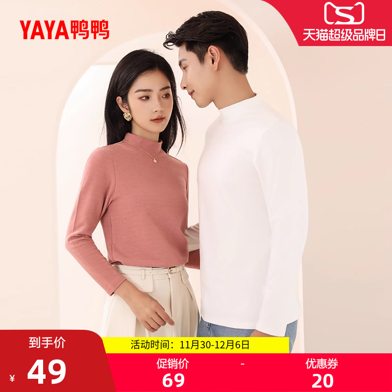 鸭鸭针织衫男女同款2025冬季升温双拼面料保暖长袖基础打底衫女C