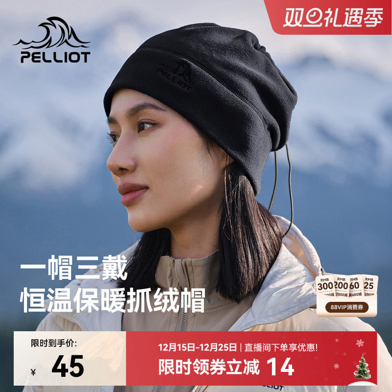 伯希和户外抓绒帽女士冬登山保暖徒步防风骑车防寒帽子围脖一体男