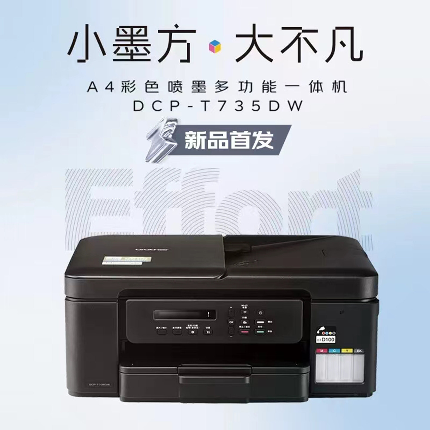 兄弟DCP-735dw打印机彩色喷墨连供无线远程自动双面打印连续复印扫描一体机多功能手机照片家用商用A4墨仓式