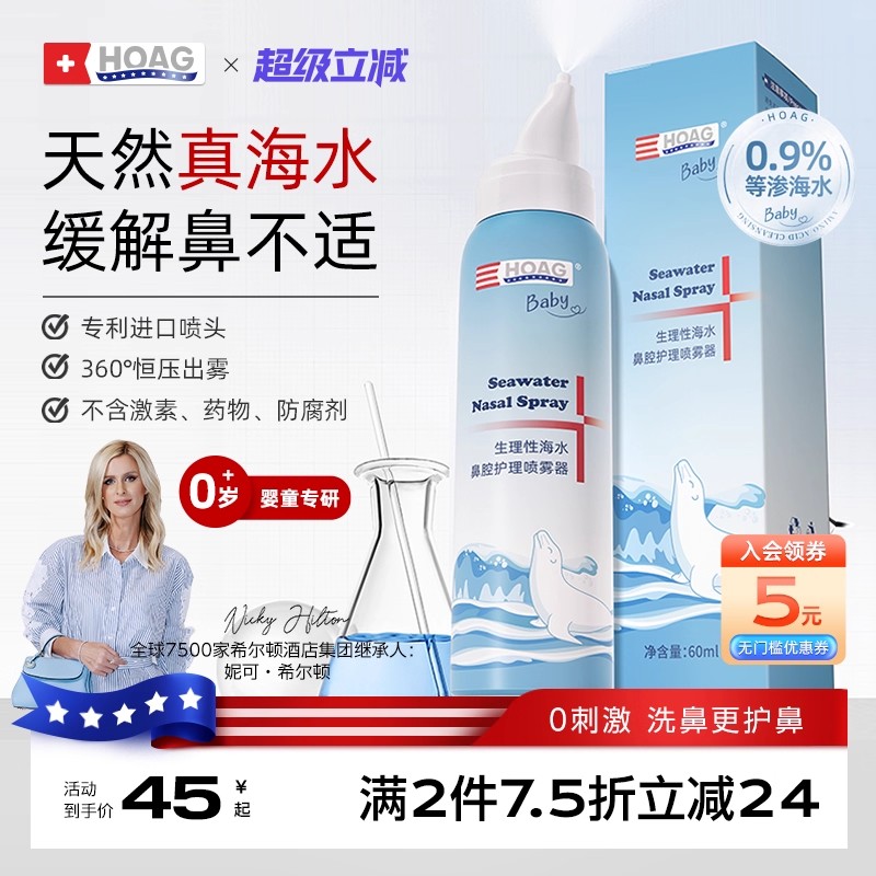霍格Hoag鼻喷婴幼儿宝宝鼻腔喷雾海盐水冲洗鼻水儿童通鼻清理盐水