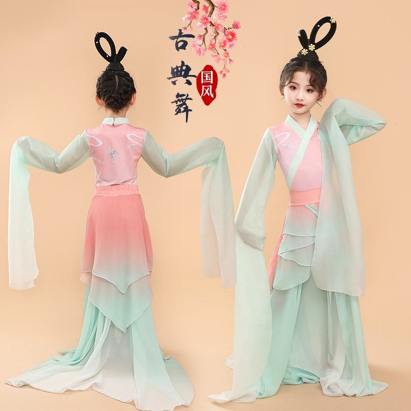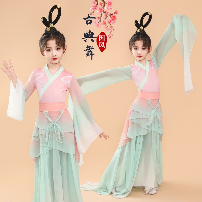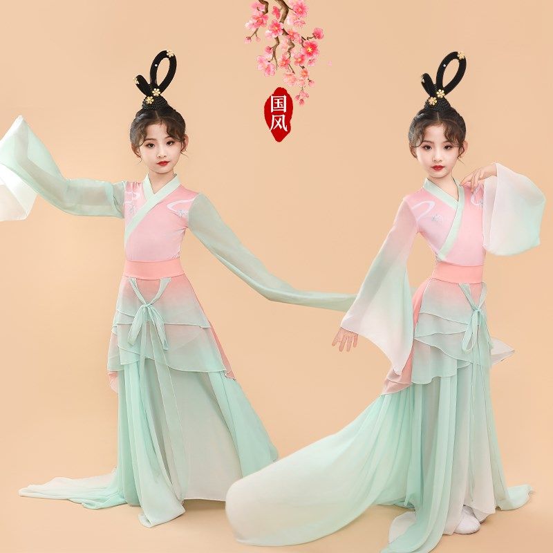 推荐理由:儿童古典舞演出服女纱裙女童汉服练功服中国风水袖服装采薇舞蹈服