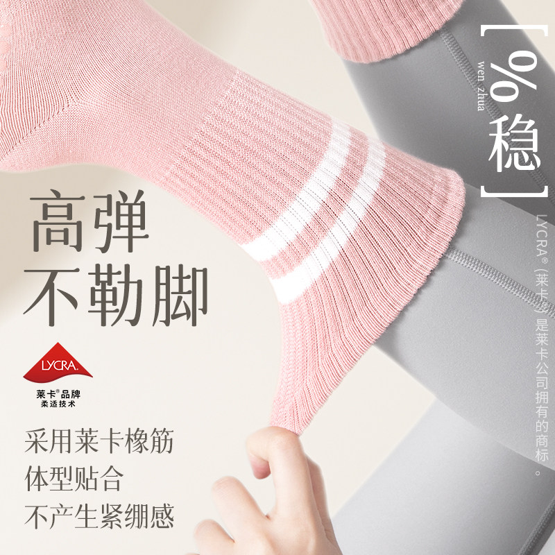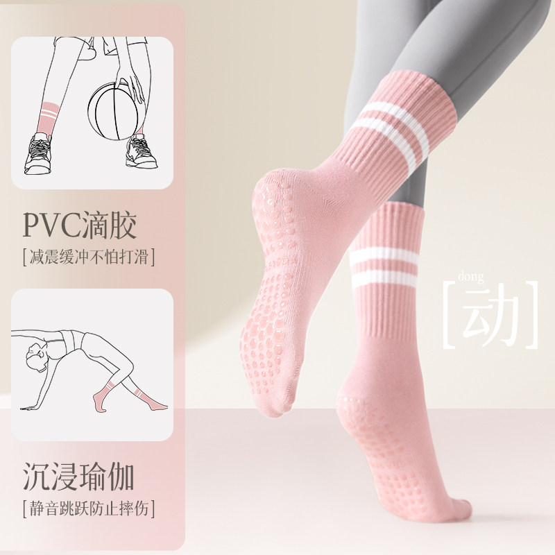 推荐理由:瑜伽袜子硅胶防滑专业女中筒纯棉春秋成人健身舞蹈普拉提运动袜子