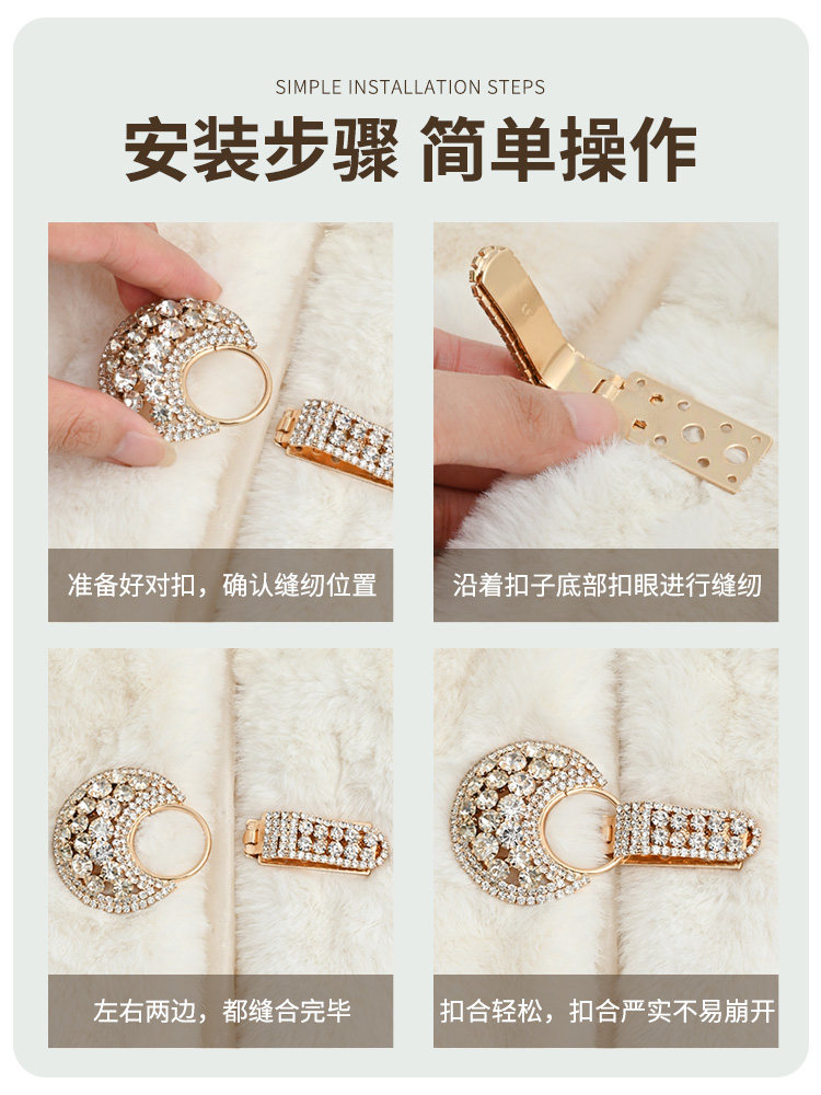 推荐理由:皮草搭扣貂皮大衣扣皮草扣带钻鸭嘴扣貂绒对扣装饰纽扣扣子配件