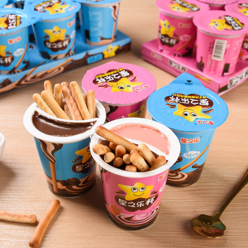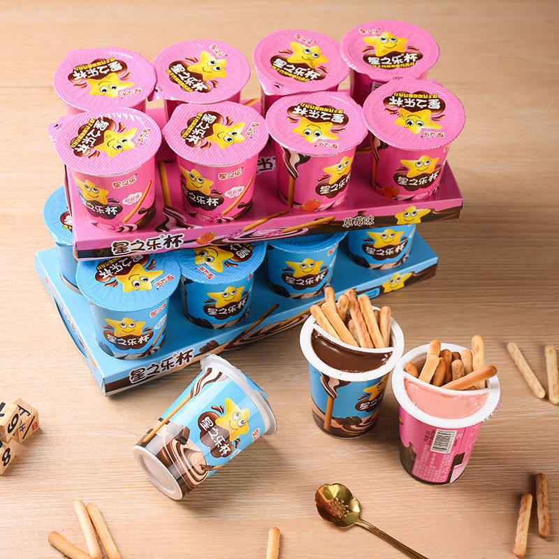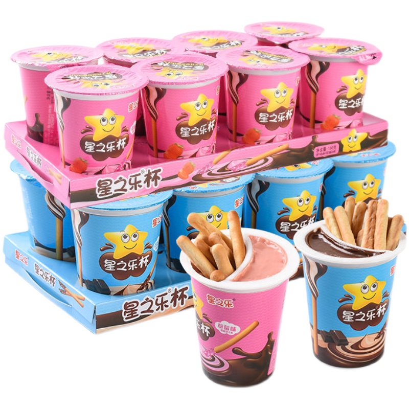 星之乐巧克力杯蘸酱手指饼干巧克力棒长条球杯桶装儿童休闲小零食