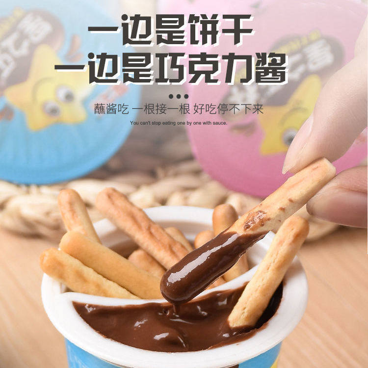 推荐理由:星之乐巧克力杯蘸酱手指饼干巧克力棒长条球杯桶装儿童休闲小零食