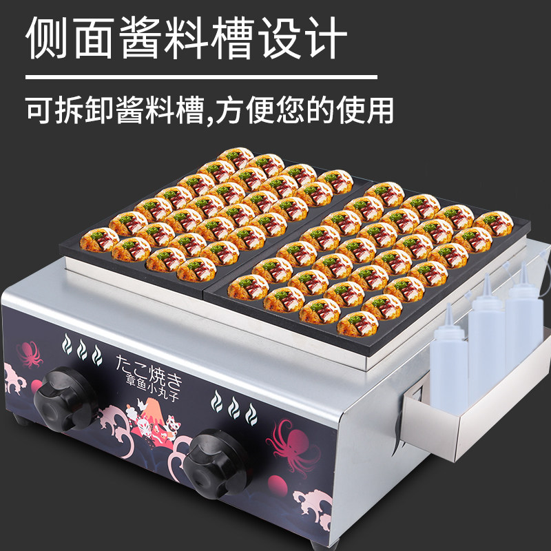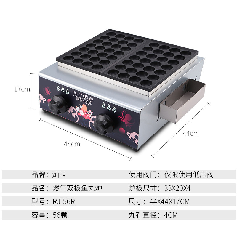 优选章鱼小丸子机商用摆摊燃气/电热56孔双板鱼丸炉章鱼烧虾扯蛋