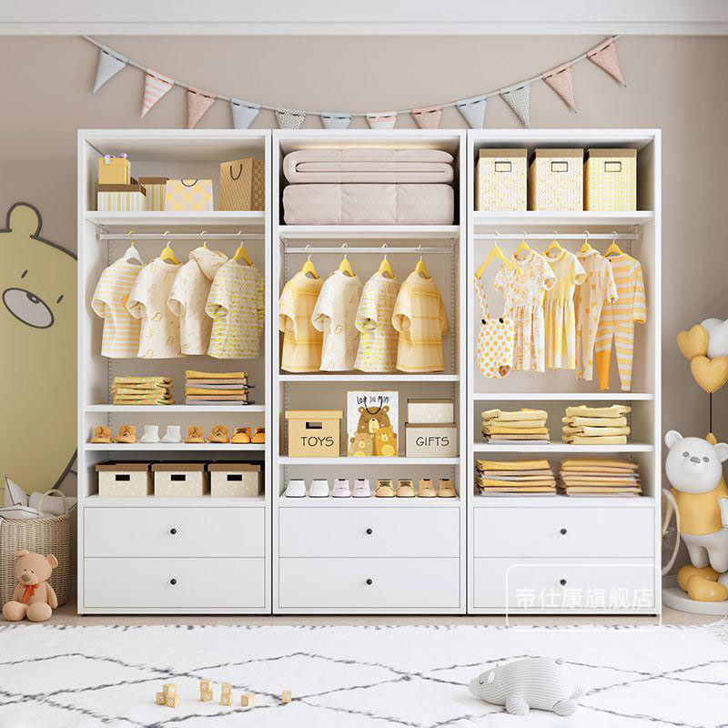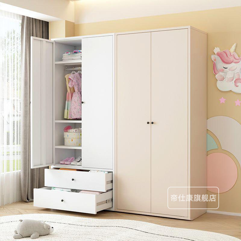 家用钢制儿童衣柜小户型带抽屉彩色铁皮大容量收纳柜阳台储物柜