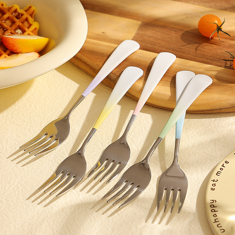 高颜值叉子儿童宝宝餐具304不锈钢水果叉家用精致甜品蛋糕西餐叉