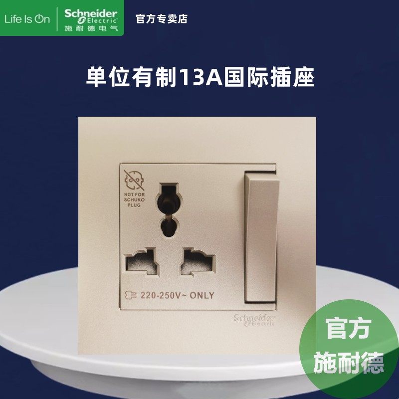 推荐理由:施耐德13A国际插座多用插元雅系列灰13A英标白色有制插苏位金黑色