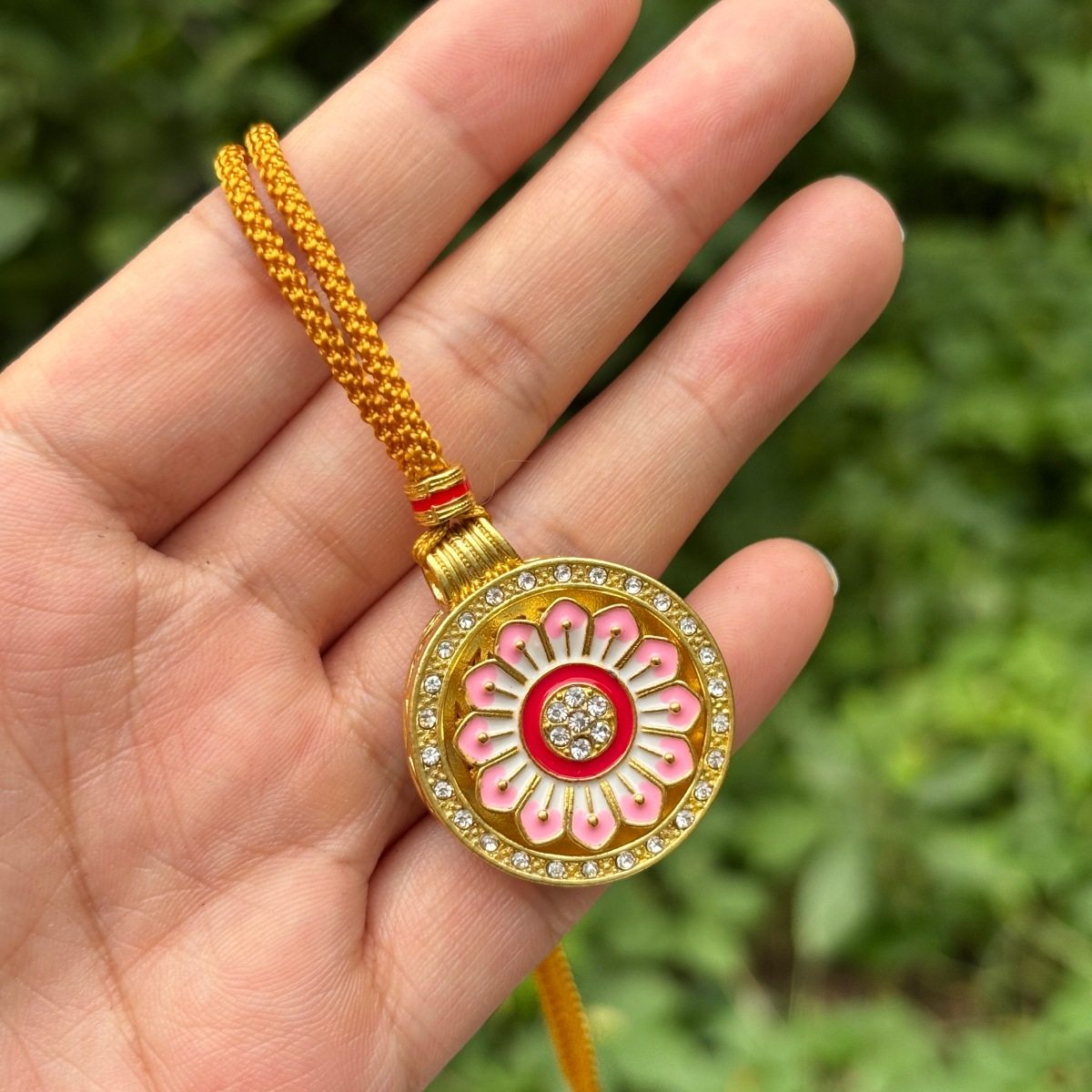 【可旋转】金店同款沙金点钻如意太阳花项链可转动罗盘吊坠项