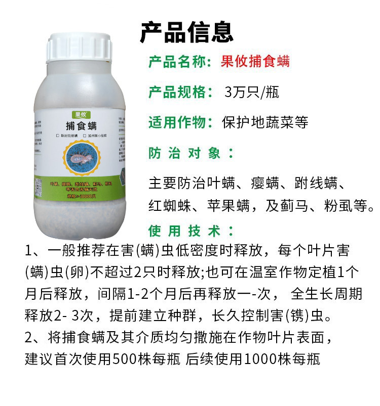 推荐理由:捕食螨 果攸加州新小绥螨 草莓月季红蜘蛛白蜘蛛蓟马天敌巴士钝绥