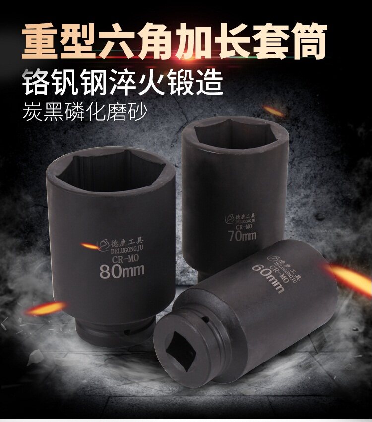 推荐理由:德鹿1寸加长风炮套筒16cm20cm气动虎啸大电动扳手重型加厚6角加深