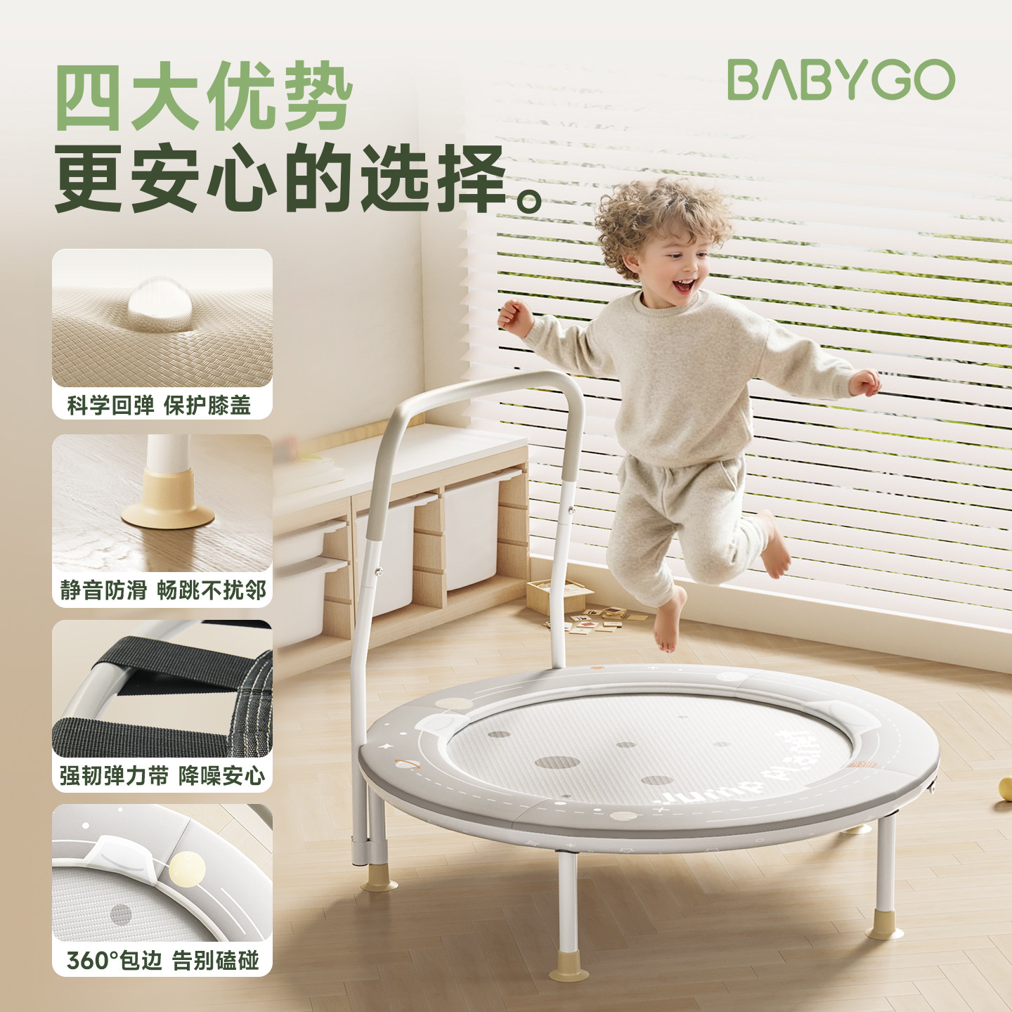 BABYGO蹦蹦床家用儿童室内家庭弹跳床可折叠跳跳床大人小孩蹭蹭床