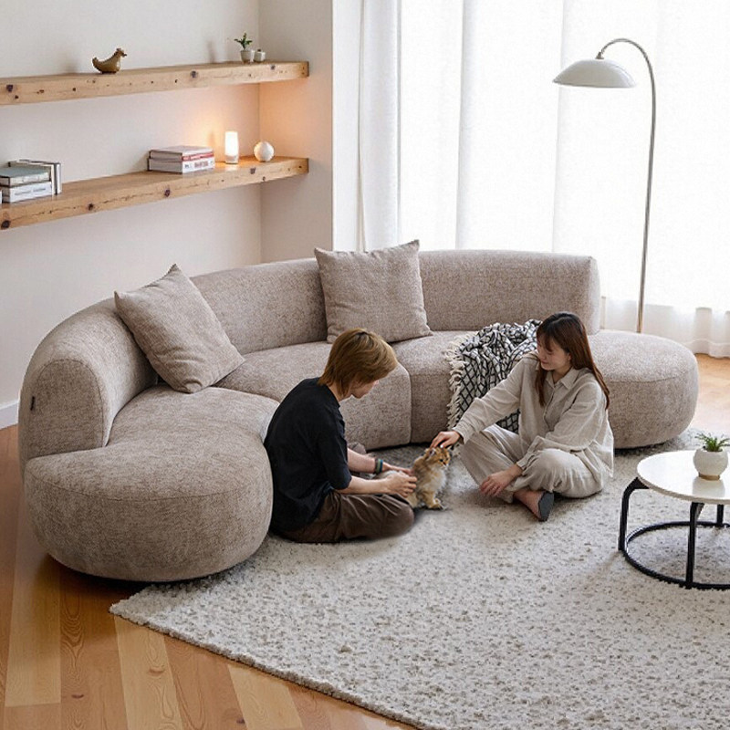 推荐理由:弦月沙发法式复古中古风弧形模块组合沙发侘寂风大平层别墅布艺#