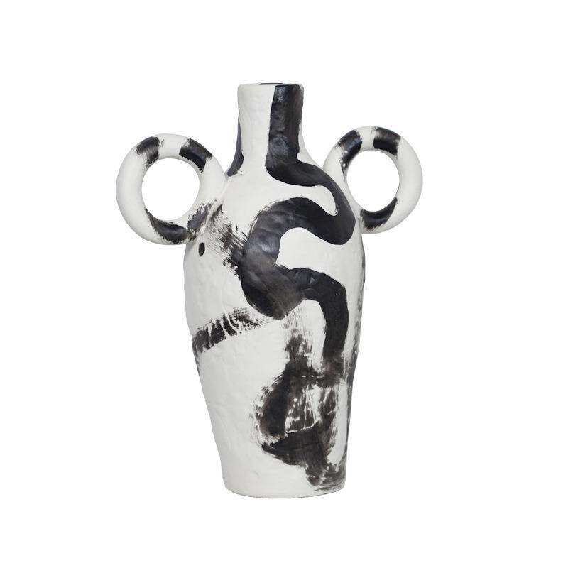 现代简约创意黑白手绘花器样板间摆件售楼处客厅诧寂软装桌面摆件