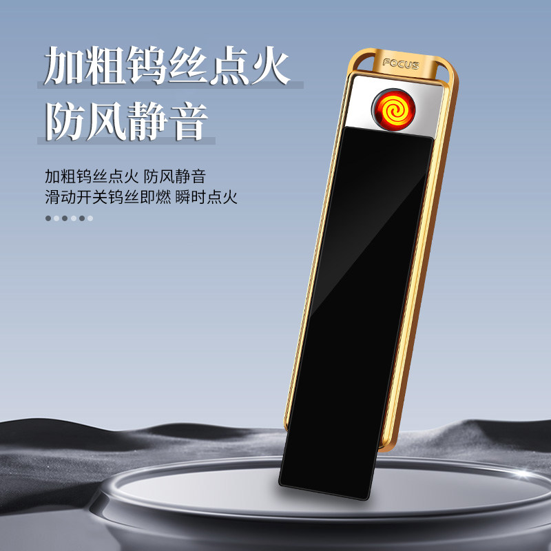 推荐理由:创意USB充电防风金属打火机智能感应火机超薄滑盖无声迷你点烟器