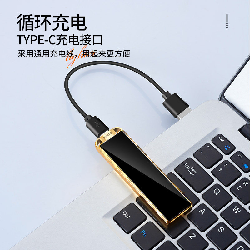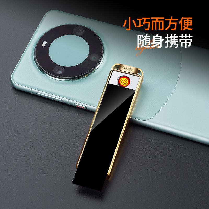 创意USB充电防风金属打火机智能感应火机超薄滑盖无声迷你点烟器
