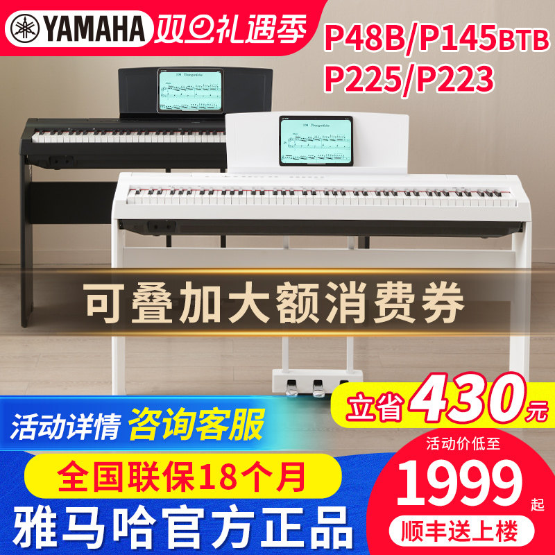 雅马哈电钢琴P225B专业88键重锤初学家用白色便携式电子钢琴P223B