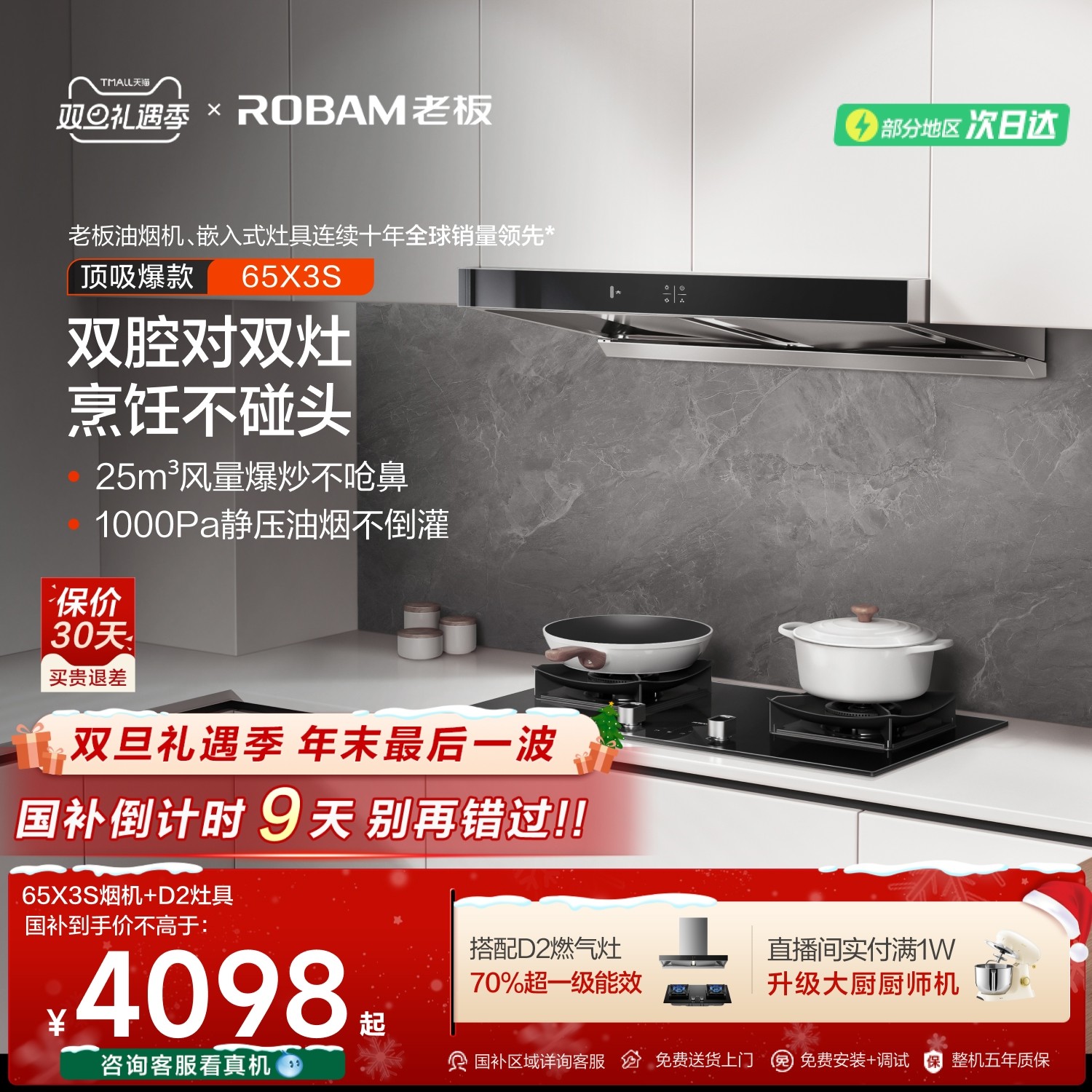 老板官方旗舰欧式顶吸65X3S套系抽油烟机燃气灶具一套烟灶套装