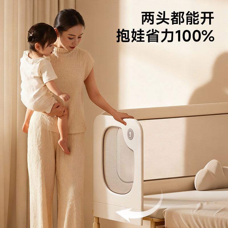 爱果乐安易铁艺拼接床婴儿床加宽大人可睡高护栏可升降折叠儿童床