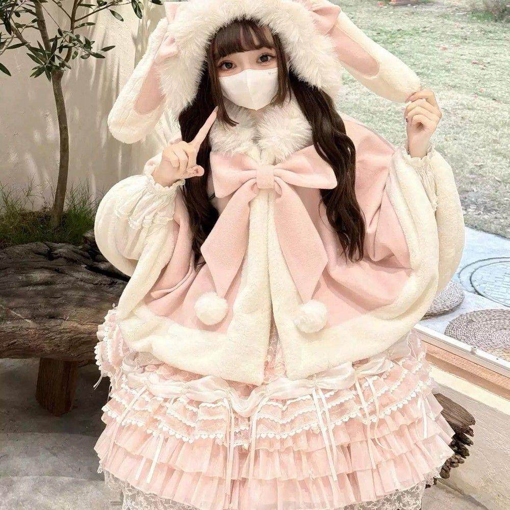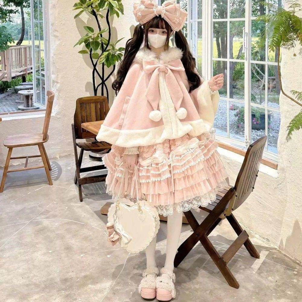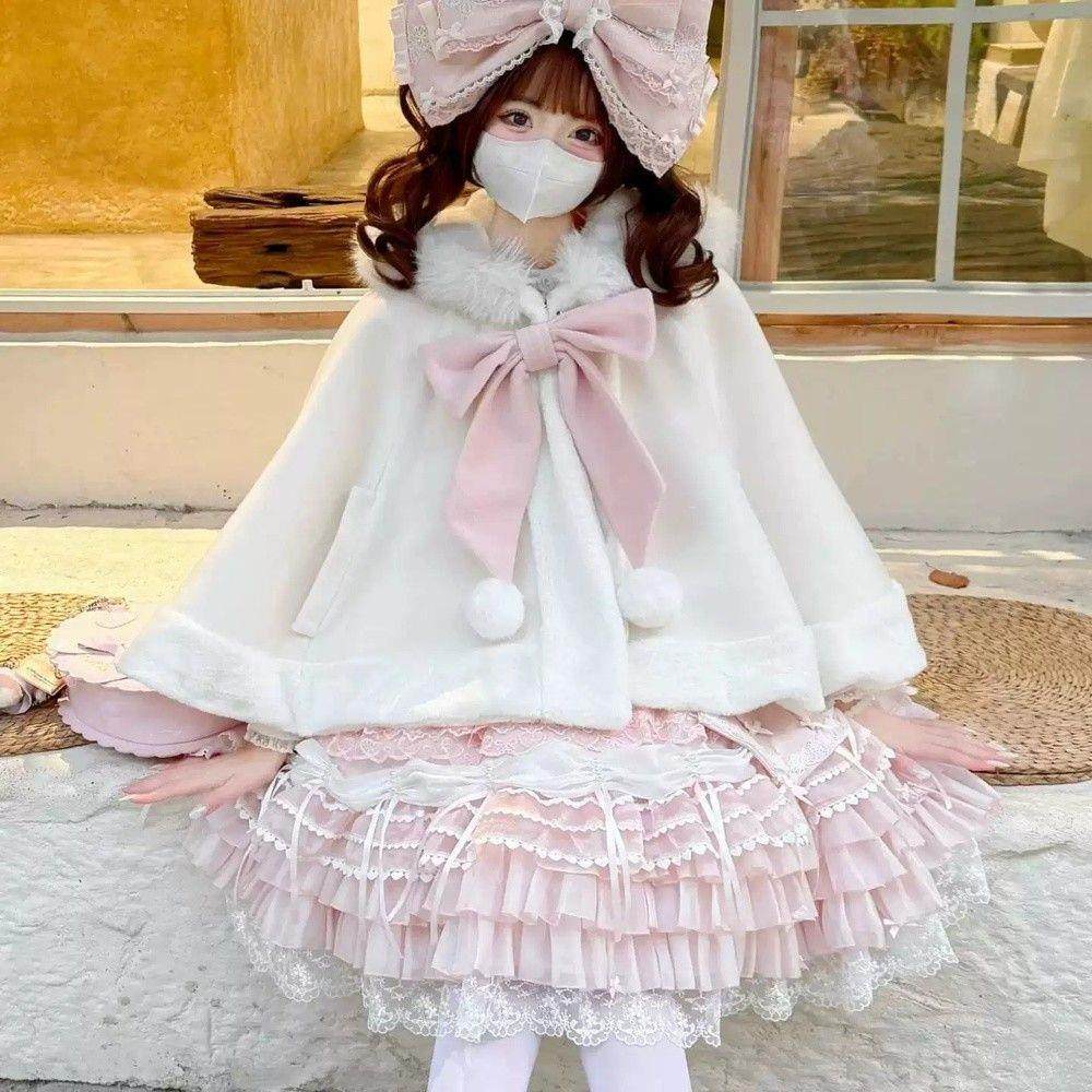 洛丽塔斗篷带帽子lolita外套百搭保暖少萝外套冬季毛毛外套