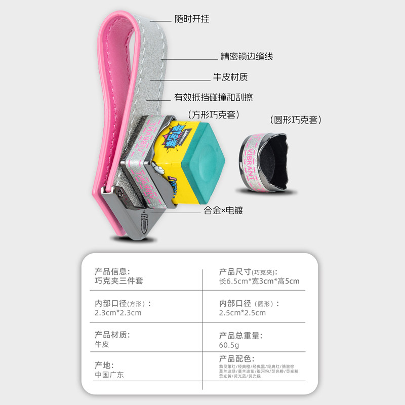 推荐理由:莱瑟塔二代官方正品台球杆包配件真皮高质感便携通用磁吸巧克粉夹