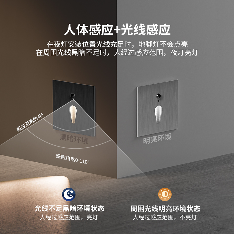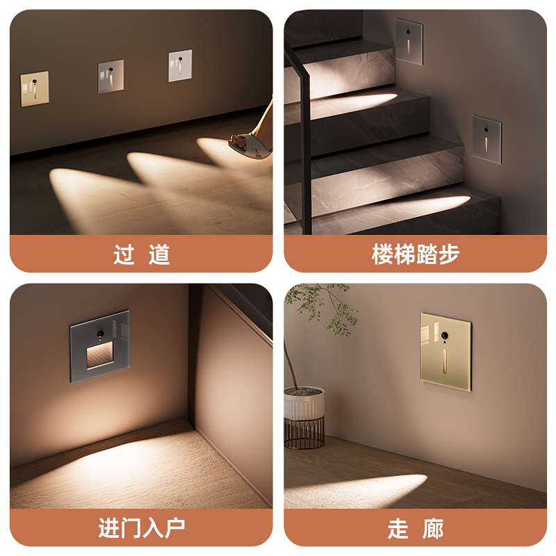 楼梯踏步感应灯入户门走廊过道小夜灯酒店家用智能人体感应地脚灯