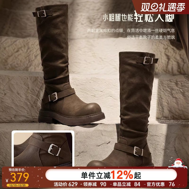 推荐理由:星期六长筒雪地靴女靴2025冬季新款棕色不过膝显瘦裤管堆堆骑士靴