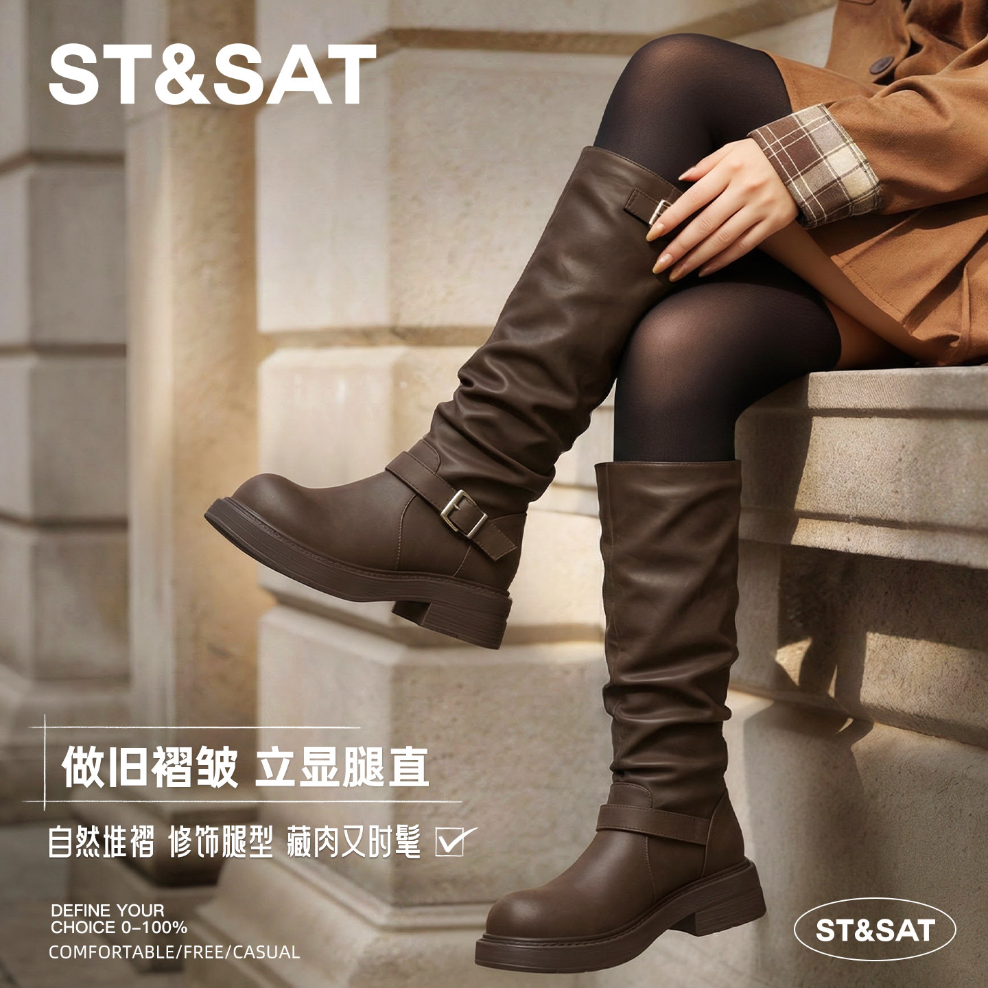 星期六长筒雪地靴女靴2025冬季新款棕色不过膝显瘦裤管堆堆骑士靴