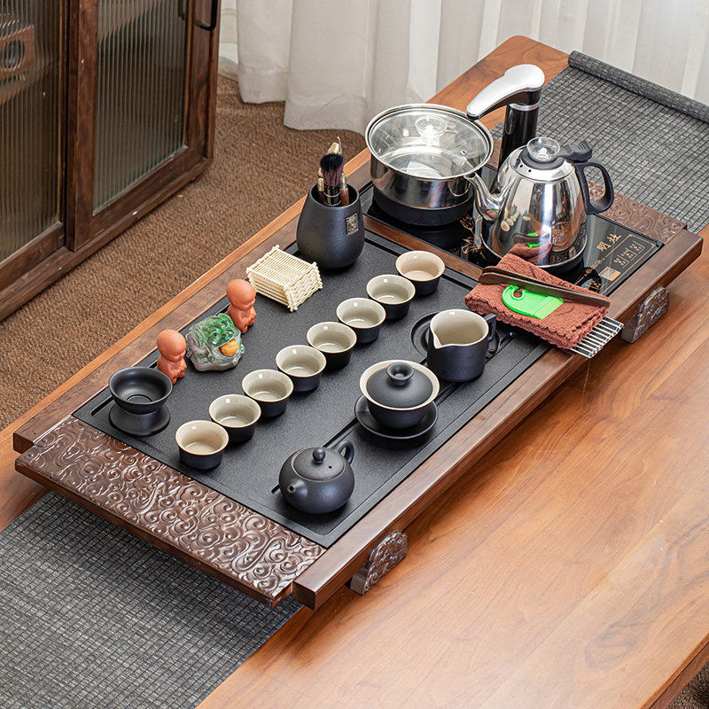 祥云实木仿乌金石整套全自动四合一茶盘紫砂功夫茶具套装家用茶海