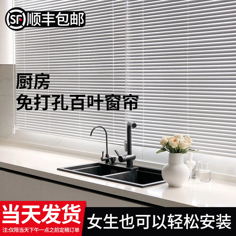 厨房百叶窗帘全遮光2024新款免打孔安装遮挡遮阳帘升降卷拉式卷帘