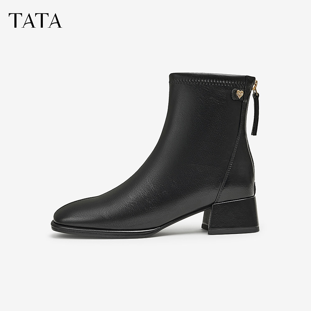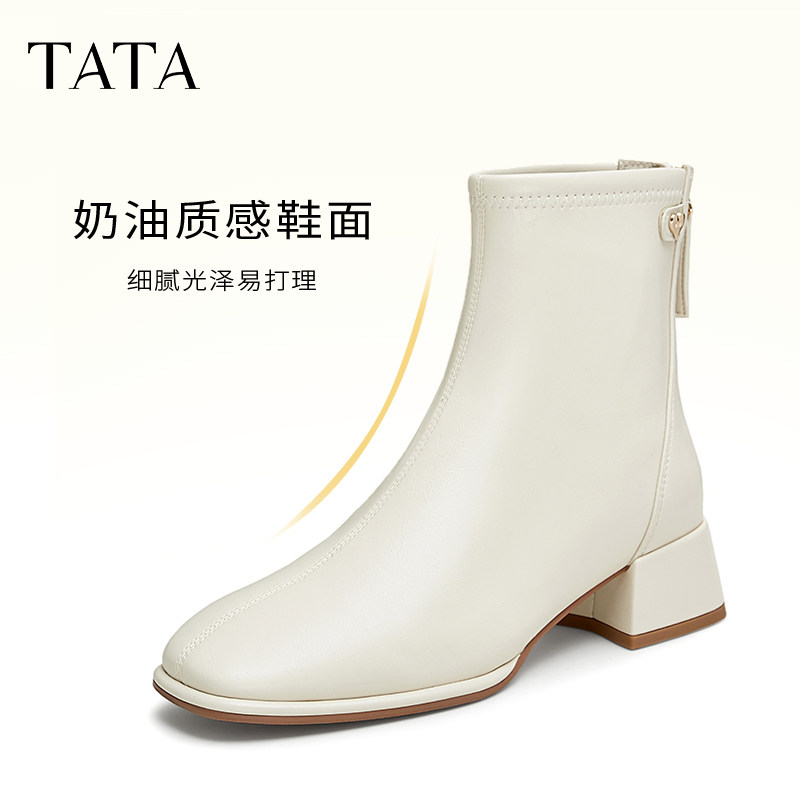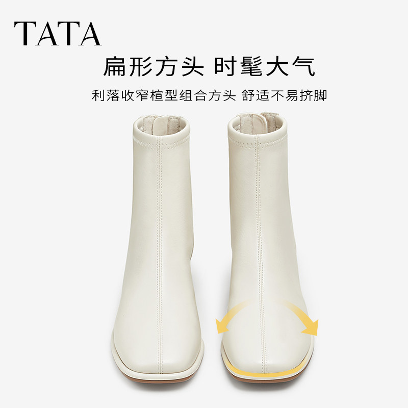 Tata他她靴子女奶皮靴显瘦时装靴英伦短靴瘦瘦弹力靴WYX02DD4奥莱