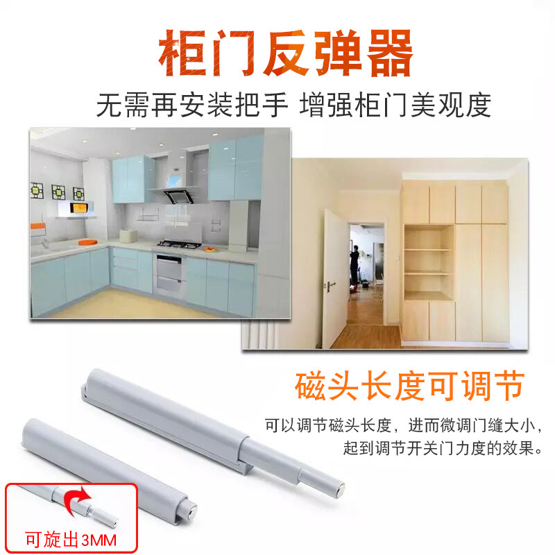 推荐理由:柜门反弹器免拉手隐形门板按压式弹跳强磁门吸自弹按弹器开门碰珠