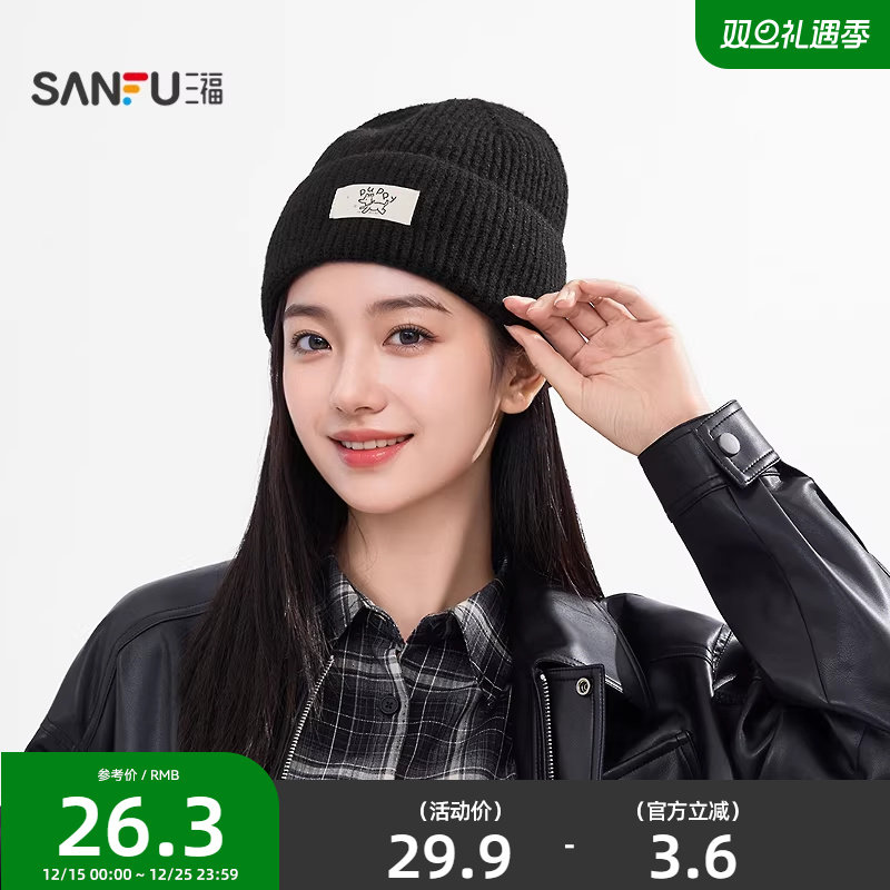 三福针织帽加厚保暖经典毛线帽时尚字母帽子男女冬2025新款845680