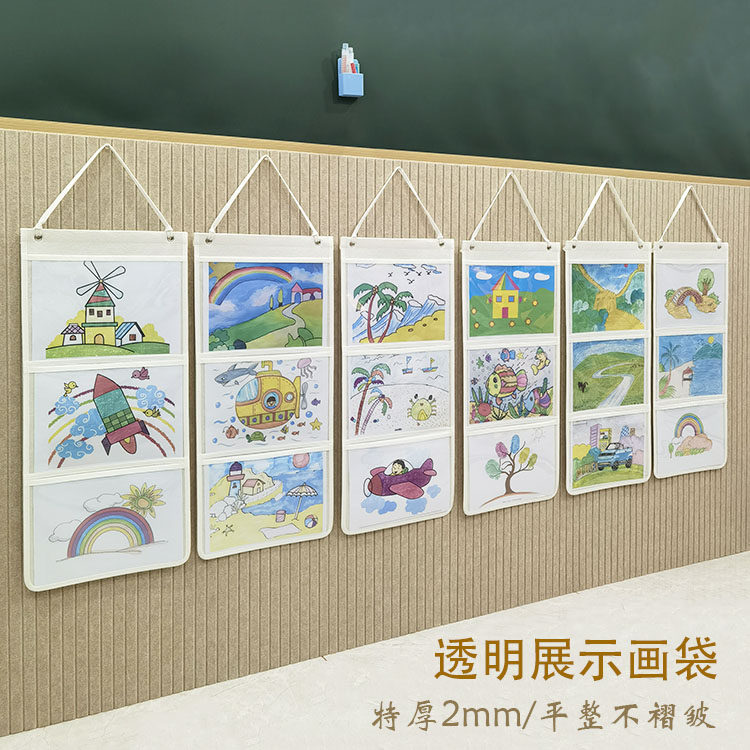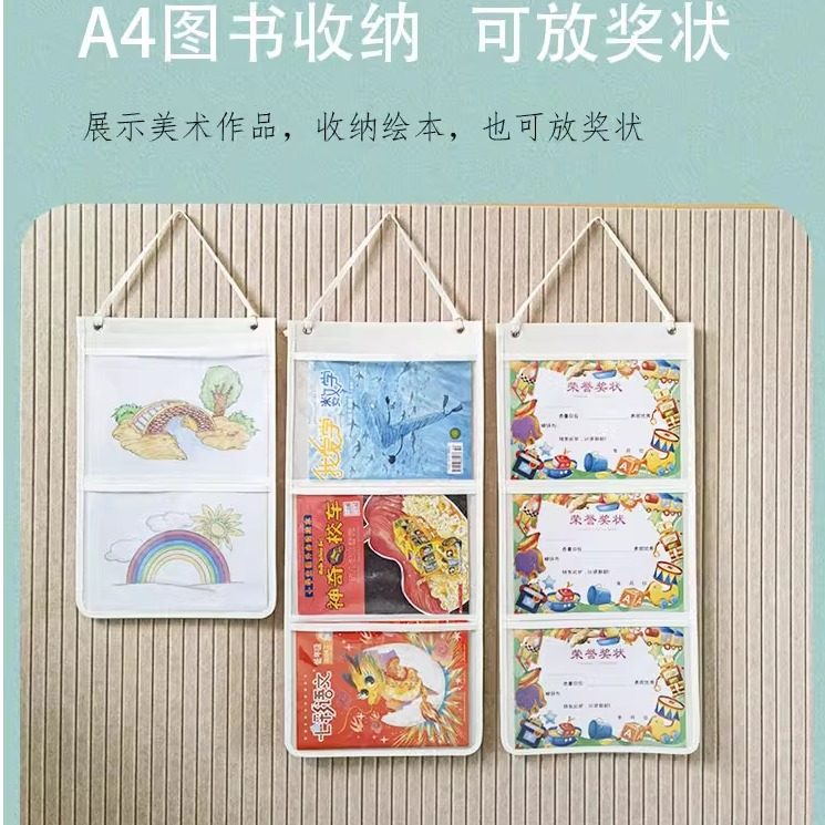推荐理由:a4美术作品袋幼儿园图书绘本图画袋挂袋教室走廊壁挂式透明收纳袋