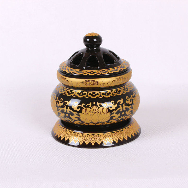 民俗用品陶瓷莲花檀香炉盘香炉净炉香粉盅檀香罐戒定真香套装