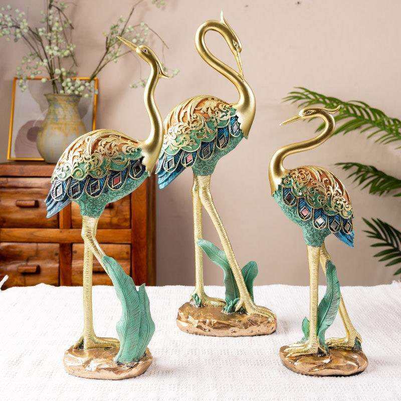 东南亚风树脂仙鹤摆件样板房软装客厅玄关电视柜博古架酒柜装饰品
