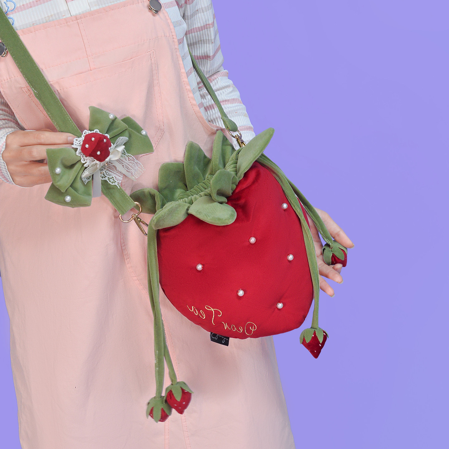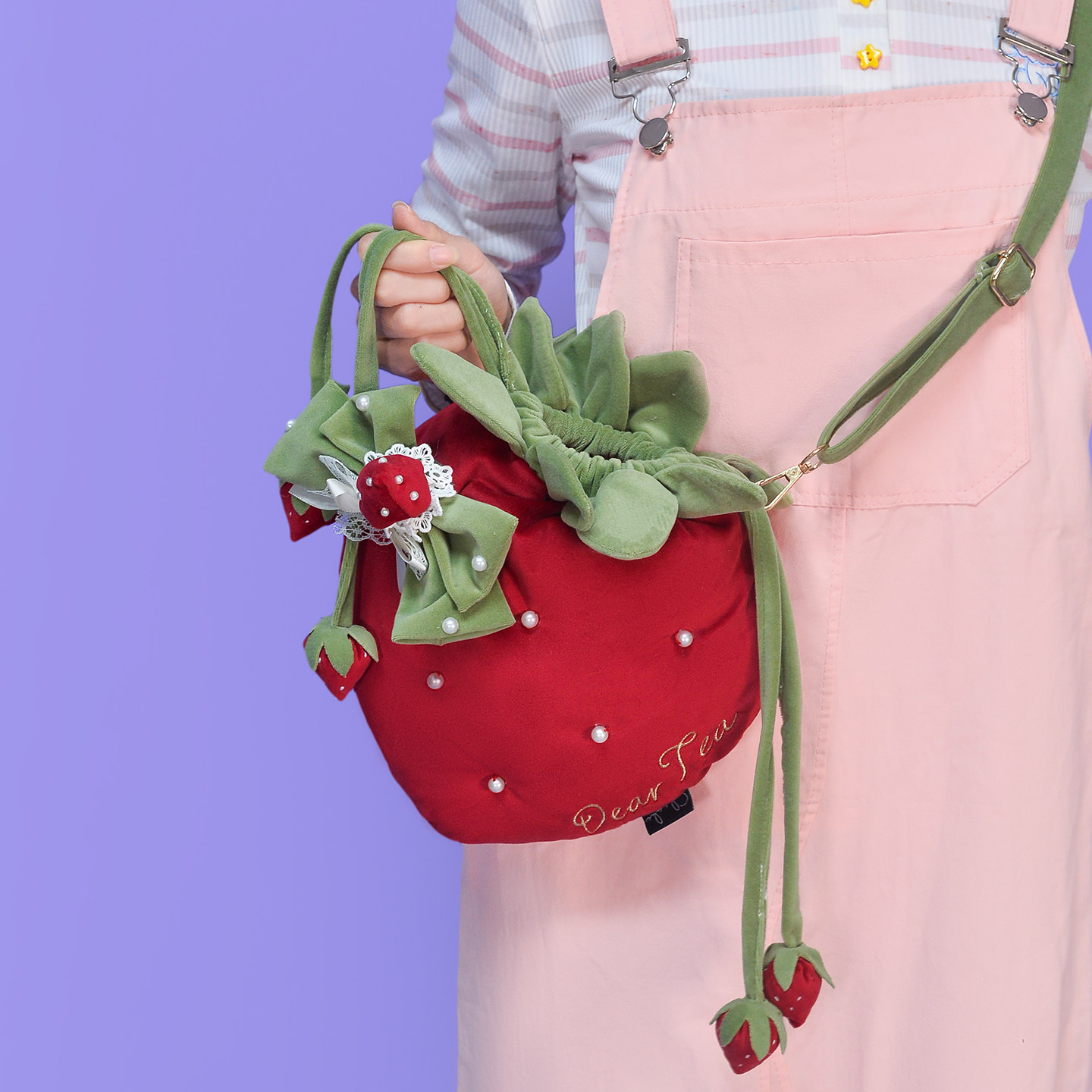 茶茶原创洛丽塔草莓包包甜美可爱少女lolita手作小物冬季毛绒包包