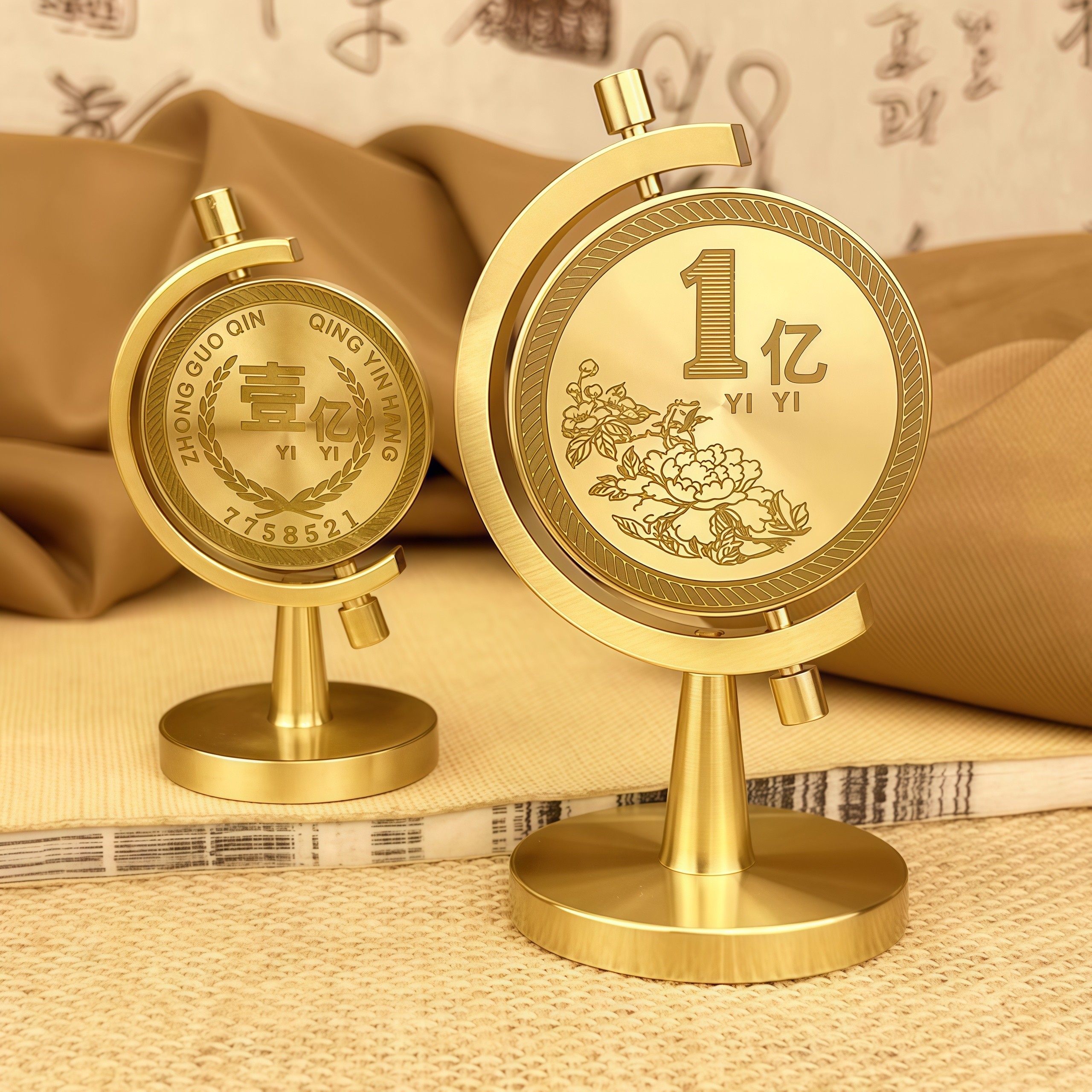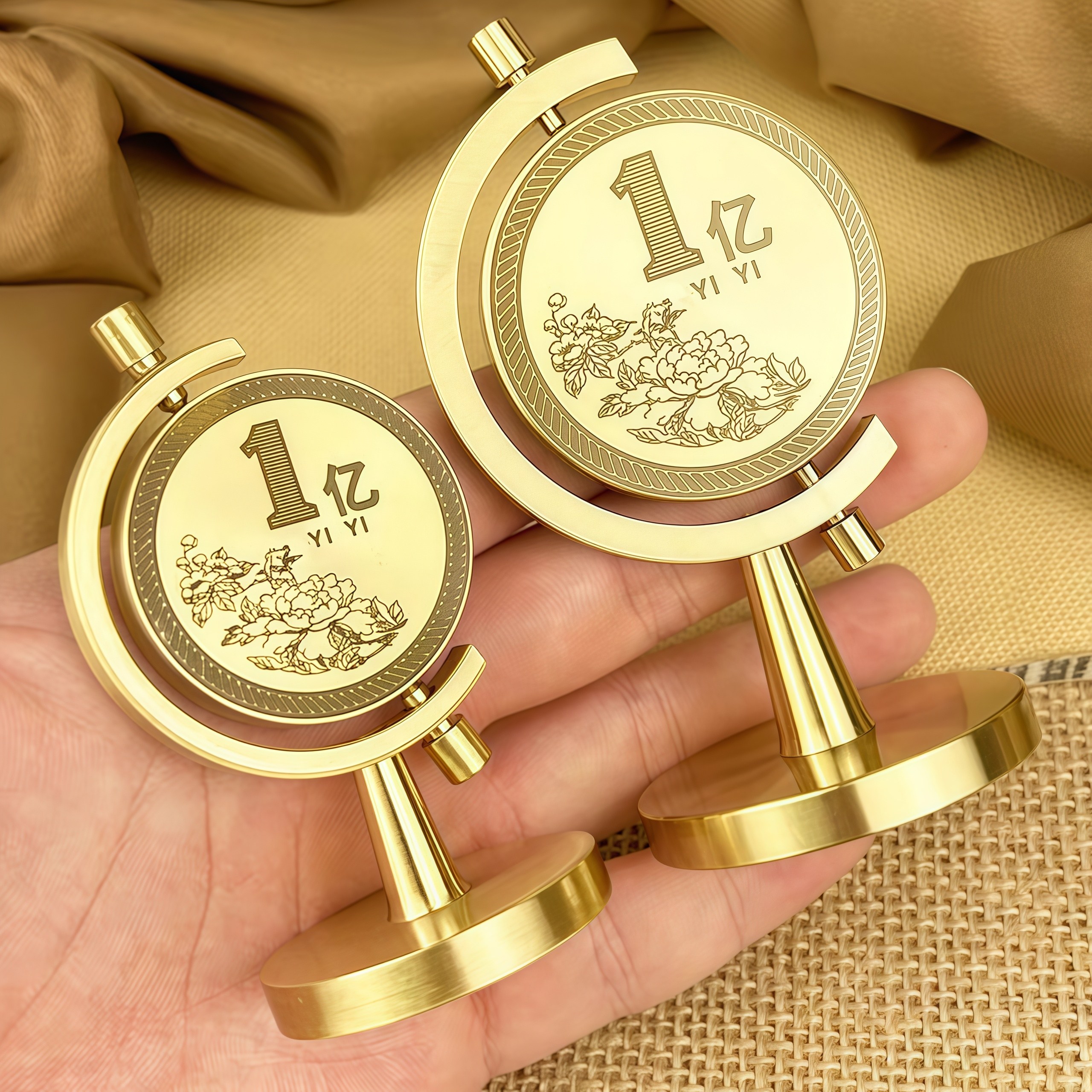 一个亿黄铜实心摆件时来运转创意书房桌面车载解压旋转硬币装饰品