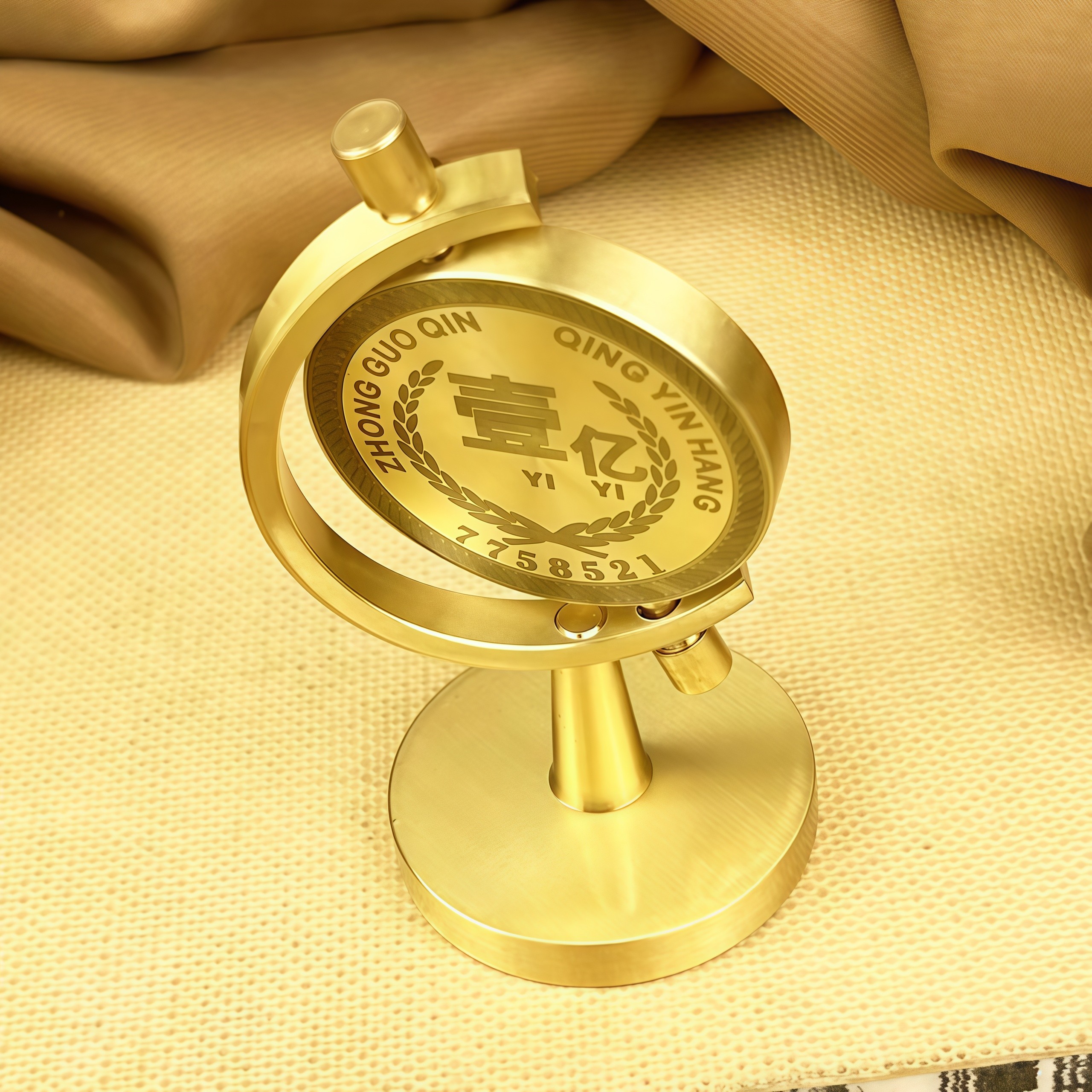 推荐理由:一个亿黄铜实心摆件时来运转创意书房桌面车载解压旋转硬币装饰品